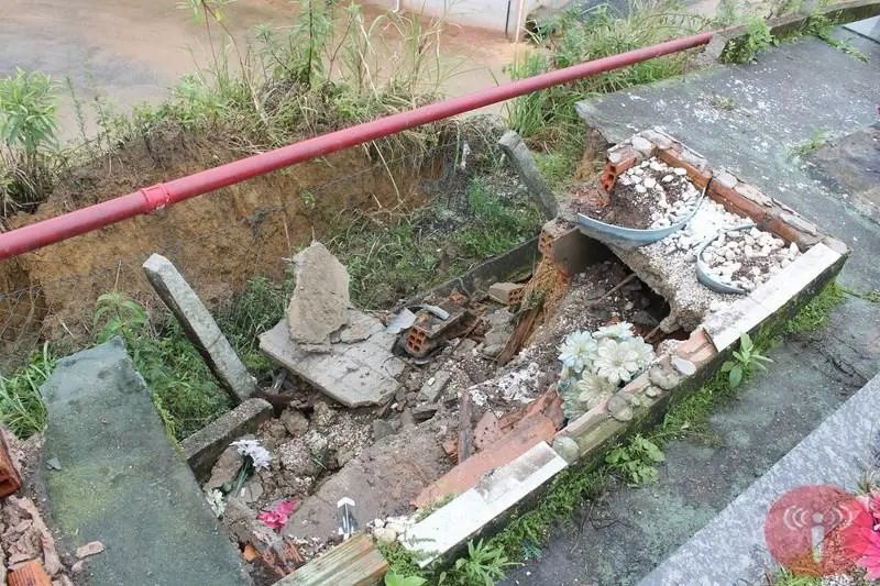 Segundo o padre, o problema foi causado pelo excesso de chuva recentemente, que fez com que houvesse o desbarrancamento. Dois túmulos acabaram prejudicados. Os restos mortais foram transladados para outro local, com aval das famílias. “Agora estamos fazendo os orçamentos para ver o que podemos fazer para conter o desbarrancamentos”, frisa o padre.