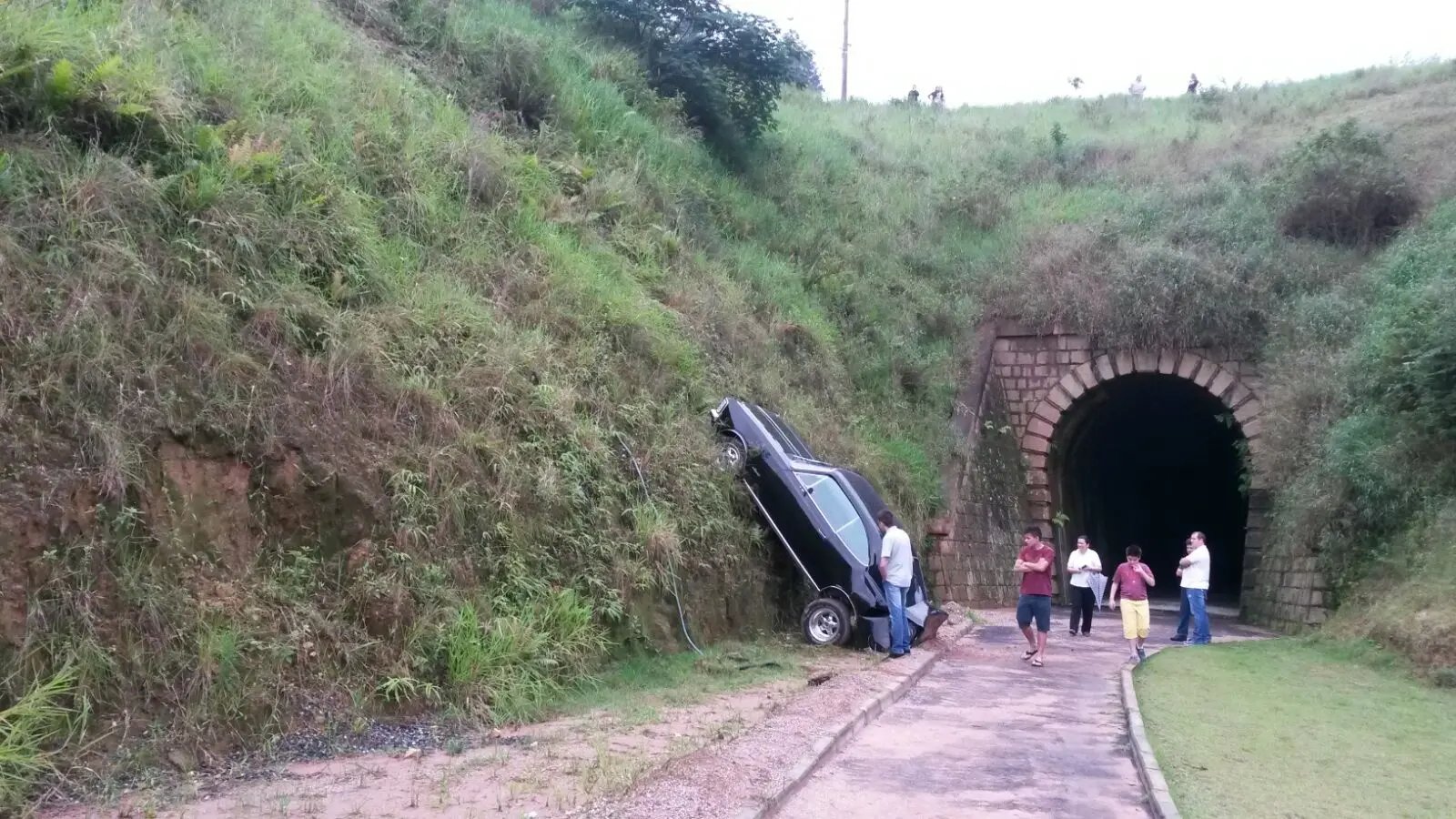 Na tarde desta sexta-feira (23), um veículo caiu em um barranco localizado às margens da Rodovia Antônio Heil. Depois de cair, o automóvel ficou virado no Parque das Esculturas, próximo ao Monte Serrat.
