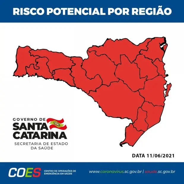 A Secretaria de Estado da Saúde divulgou neste sábado (12), a Matriz de Risco Potencial e mostrou piora da semana passada para esta. A região da Grande Florianópolis, que vinha se mantendo no patamar grave há semanas, além do Nordeste e do Médio Vale do Itajaí, que estavam com o mesmo índice na semana anterior, passaram para o nível de alerta gravíssimo. As demais 13 regiões de saúde permanecem em situação gravíssima para transmissão da Covid-19.