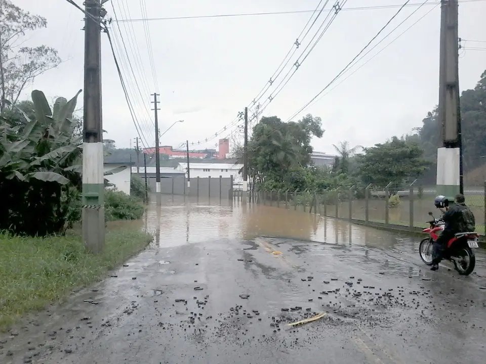 A água tomou conta do trecho da Rua Ernesto Bianchini, no Bairro Rio Branco, proximidades da empresa Irmãos Hort. O tráfego pelo local está completamente impossibilitado.