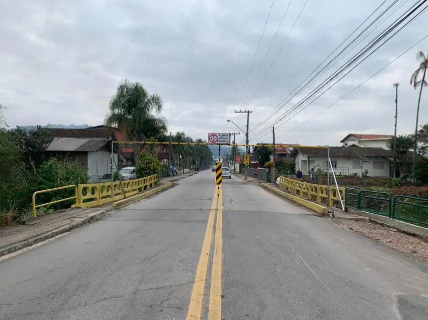 A Diretoria de Trânsito e Mobilidade de Brusque instalou uma trave de limitação de altura na ponte da rua Itajaí, entre o mercado Rieg e o Centro Esportivo do Sesi. O local já está sinalizado e permite a passagem de veículos leves até duas toneladas, com altura máxima de 2,30 metros.
