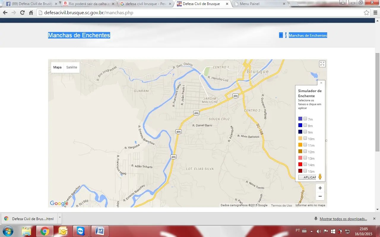 Segundo profissionais da Defesa Civil, acima de 7 metros é que algumas ruas dos bairros mais baixos e próximos ao rio poderão ter água pelo volume apresentado. Os bairros Dom Joaquim, Guarani e Santa Teresinha são os primeiros a serem atingidos. O internauta pode acessar o link abaixo e fazer uma simulação das ruas atingidas. Acesse: http://defesacivil.brusque.sc.gov.br/manchas.php