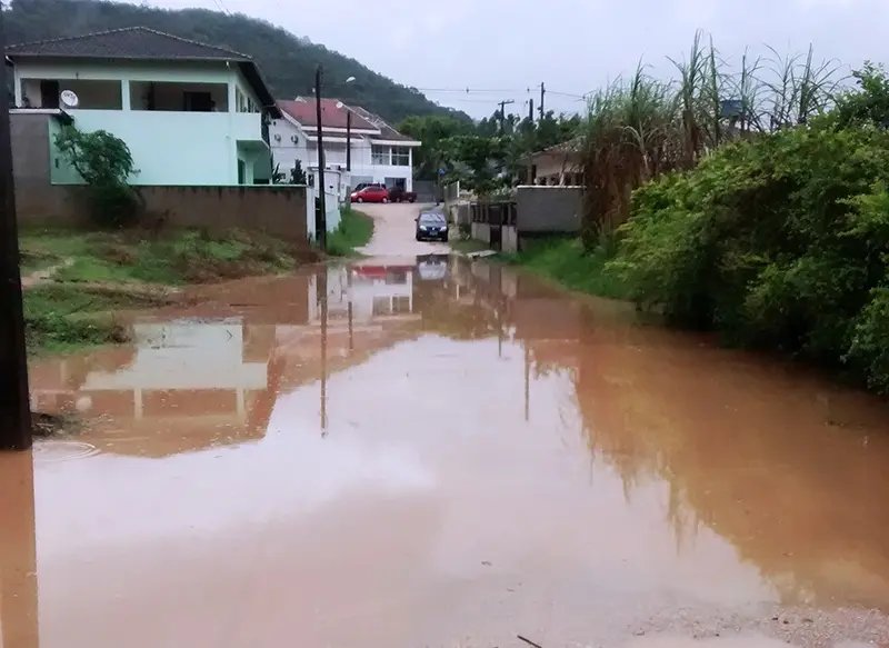 Jean Carlos Reddiga, morador da Rua Alberto Petermann, ao lado da Unidade Básica de Saúde Rio Branco, enviou imagens de hoje de manhã, sexta (16) após cinco minutos de chuva.