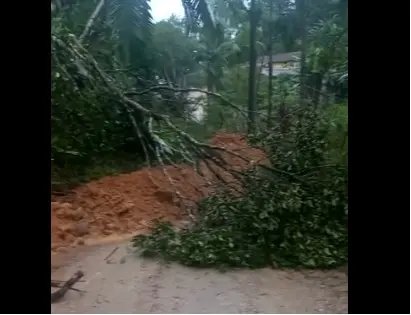 (VÍDEO) Árvore cai e morro desaba, trancando acesso à rua