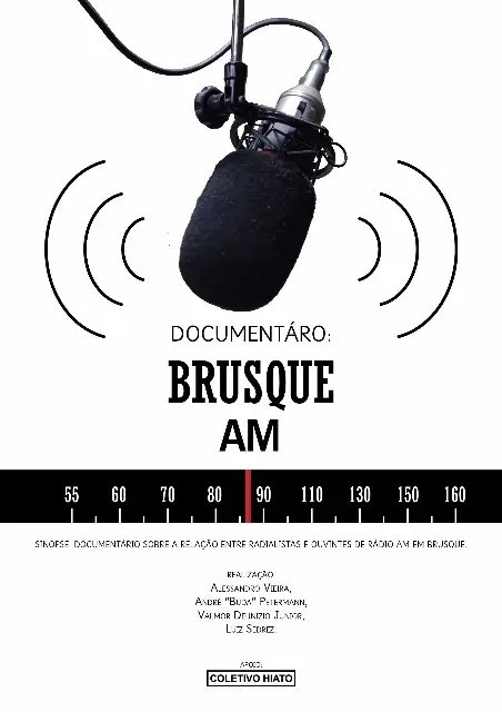 Às 18h desta quarta-feira (8), será exibido pela segunda oportunidade no Cine Gracher o documentário “Brusque AM”, que trata da relação entre radialistas e ouvintes do rádio AM brusquense. O documentário é uma produção de quatro alunos do curso de cinema do Coletivo Hiato, André “Buda” Petermann, Alessandro Vieira, Valmor Deunizio Júnior e Luiz Sedrez.