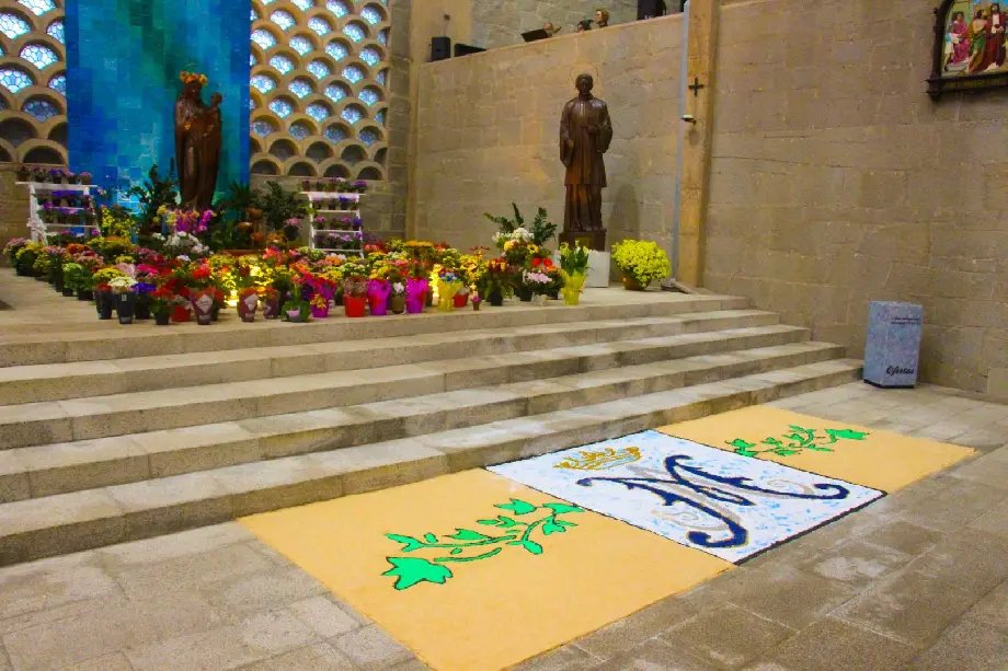 Para a realização da celebração de Corpus Christi deste ano, foram produzidos os ‘tapetes da fé’, que permanecerão na Matriz durante todo o mês de junho. O trabalho destaca o zelo de algumas pastorais da igreja, que receberam a grata missão de trazer mais cor ao corredor principal da Matriz. Os tapetes foram confeccionados pelas pastorais da Catequese, Ministros, Liturgia e Dízimo, Jovens (Acampamento, Emaús e EJU) e Apostolado da Oração.