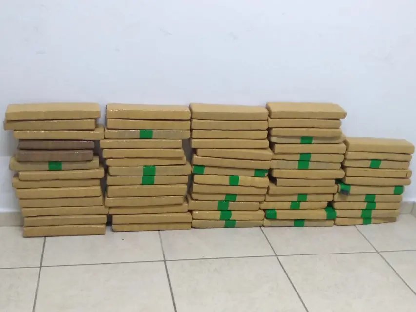 Os policias realizaram buscas pela casa, e no local informado pela mulher, no telhado da residência, foram encontrados vários sacos plásticos de cor preta, contendo 63 tijolos de droga, aparentando ser maconha, que após pesados totalizaram aproximadamente 51,5 kg. Foi encontrado ainda uma balança de precisão, e uma câmera de segurança que filmava a rua e a entrada da casa, também foram aprendidos 2 celulares.