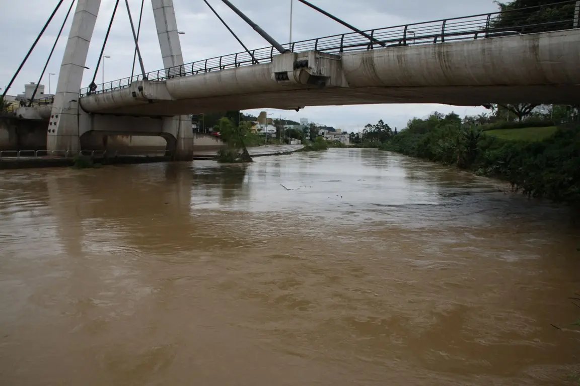 Uma leve subida no nível do Rio Itajaí Mirim nas últimas horas indica que Brusque já está recebendo águas de Vidal Ramos e Botuverá. As duas cidades não registraram mais chuvas significativas desde o final da manhã. Em Vidal Ramos o rio já começou a baixar. Às 15h30 o Itajaí Mirim marcava 4,70m.