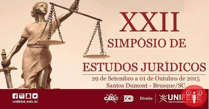 Entre os dias 29 e 30 de setembro e 1º de outubro acontece o 22º Simpósio Jurídico, no Clube Santos Dumont, a partir das 19h. O evento, que conta com palestras de temas como drogas, legislação trabalhista e Código de Processo Civil, é realizado pelo Centro Acadêmico de Direito da Unifebe.