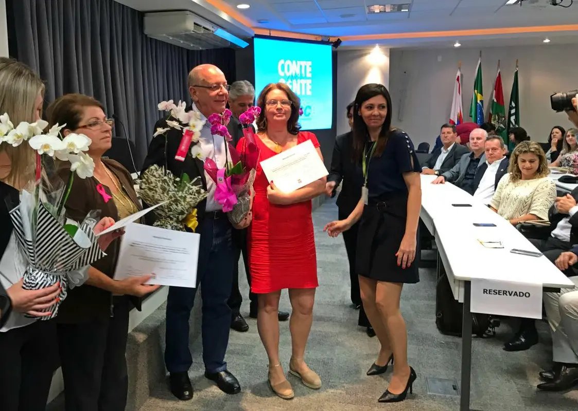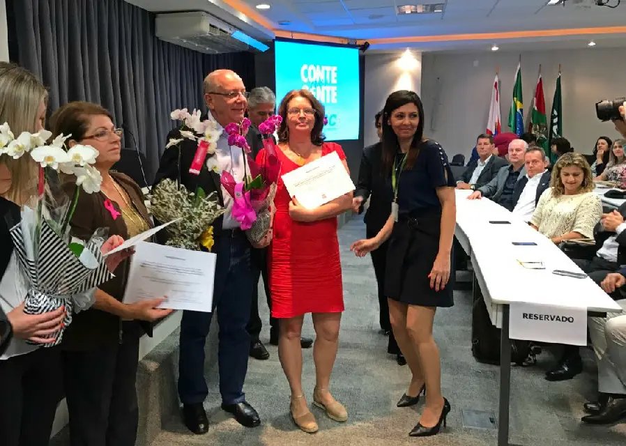 O Governo do Estado, por meio da Secretaria de Estado da Educação, concedeu na segunda-feira, 23, na sede da Fiesc, em Florianópolis, uma menção honrosa pelo trabalho prestado à educação aos professores catarinenses selecionados pelo Ministério da Educação para o Prêmio “Professores do Brasil. Entre os mestres homenageados está Ana Maria Quinoto Imhof, professora da Escola de Educação Básica Feliciano Pires, de Brusque.