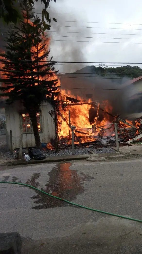 De acordo com o Corpo de Bombeiros, o incêndio atingiu a casa que fica na Rua Augusto Merizio. A residência, de madeira, não resistiu ao avanço rápido das chamas e foi tomada pelo fogo. Viaturas dos Bombeiros de Brusque e Guabiruba foram deslocadas, mas não conseguiram, evitar a destruição.