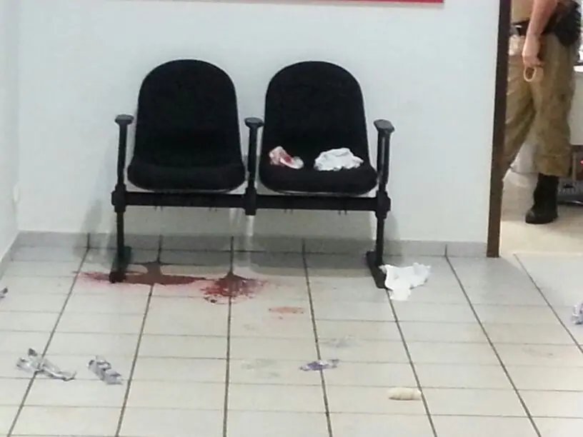 Segundo policiais e pessoas que presenciaram cena, a mulher teria dado vários golpes na altura do peito, na garganta e pulsos com um artefato semelhante a um bisturí. A cena de muito sangue no local dava uma amostra do que tinha ocorrido ali.