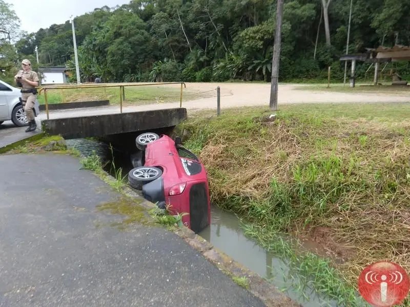Segundo o condutor do Celta, de cor vermelha e placas de Brusque, Lucas Parisotto Gomes (19), ele seguia pela via no sentido bairro/Centro quando, já na altura da Fábrica de Tecidos Renaux, foi realizar a curva e perdeu o controle do carro, caindo em uma vala. Ainda conforme Gomes, a velocidade do carro era de 60 km/h, mas devido à pista molhada, o carro teria derrapado.