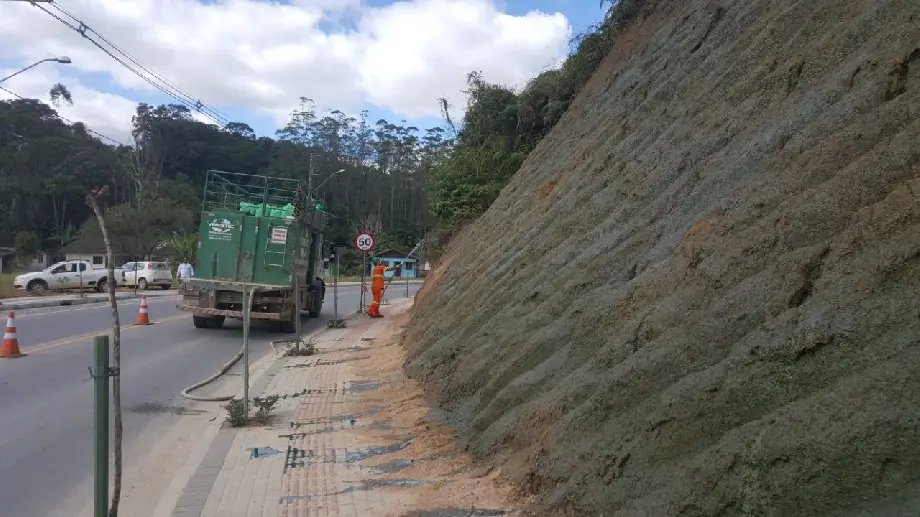 Nos últimos meses foram aplicados em Guabiruba 1.470m² de hidrossemeadura, sendo 1.170 m² na Rua São Pedro e 300m² na Rua Arthur Baumgartner. O investimento foi de aproximadamente R$ 4 mil.