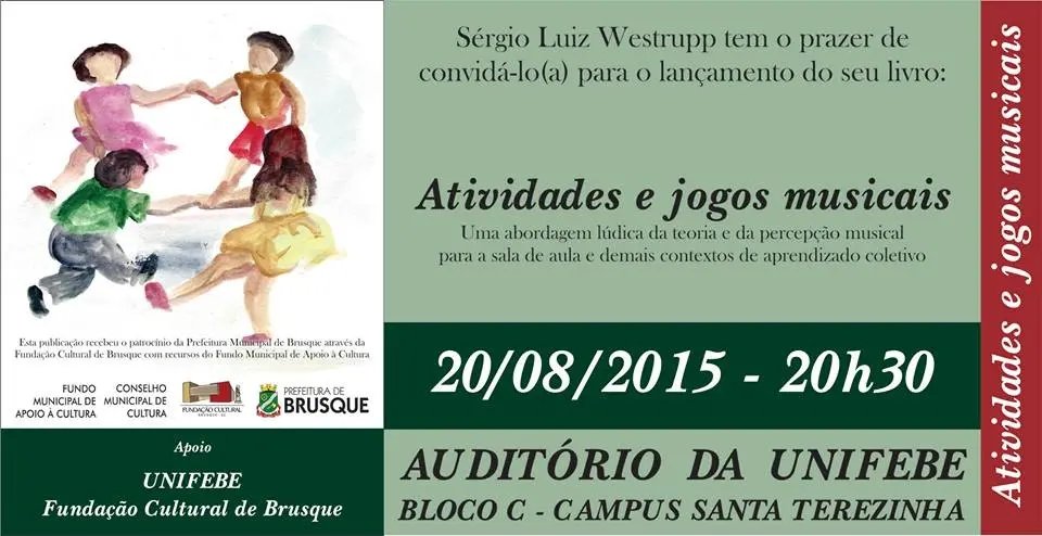 O evento será no auditório do bloco C da Unifebe às 20h30min. Estarão presentes representantes da Fundação de Cultura de Brusque, do Conselho Municipal de Cultura, Secretaria Municipal de Educação, Gerência de Educação da 16ª SDR, do curso de Pedagogia da Unifebe, educadores musicais e público em geral, a quem serão doadas os primeiros exemplares.