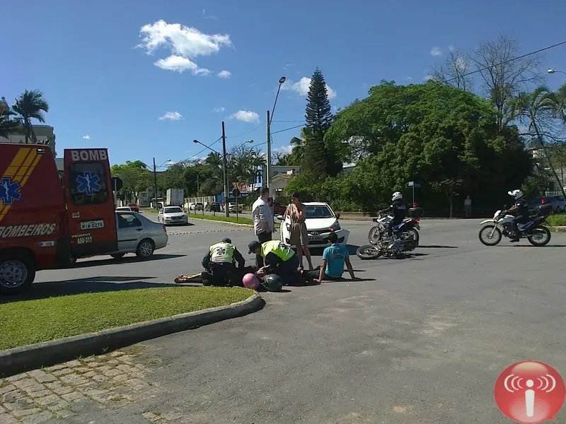 O acidente ocorreu entre um Hyundai HB20 Sedan branco de Brusque e uma motocicleta Honda Titan, de cor prata e placa de Brusque, por volta das 11h40min de hoje.