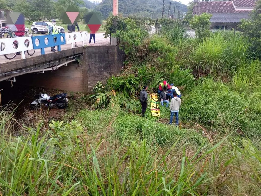 Motociclista sofre fratura nas pernas ao cair em ribanceira em Guabiruba