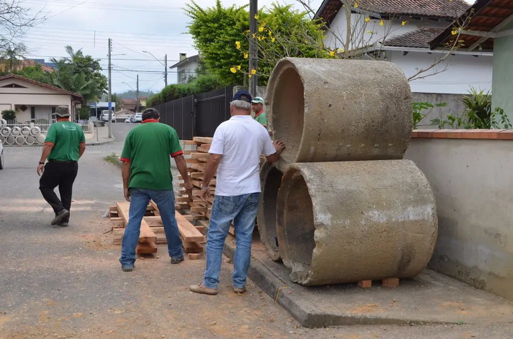 As equipes da Secretaria de Obras da Prefeitura de Brusque estão concentradas em diversas localidades do município para melhorar os sistemas de drenagem e escoamento das águas da chuva. Nesta quarta-feira (20), os servidores finalizaram os trabalhos de implantação de tubulação na Avenida Dom Joaquim, onde a equipe também executa a proteção das margens do rio Itajaí Mirim, com a colocação de pedras detonadas, na Rua Beira Rio.