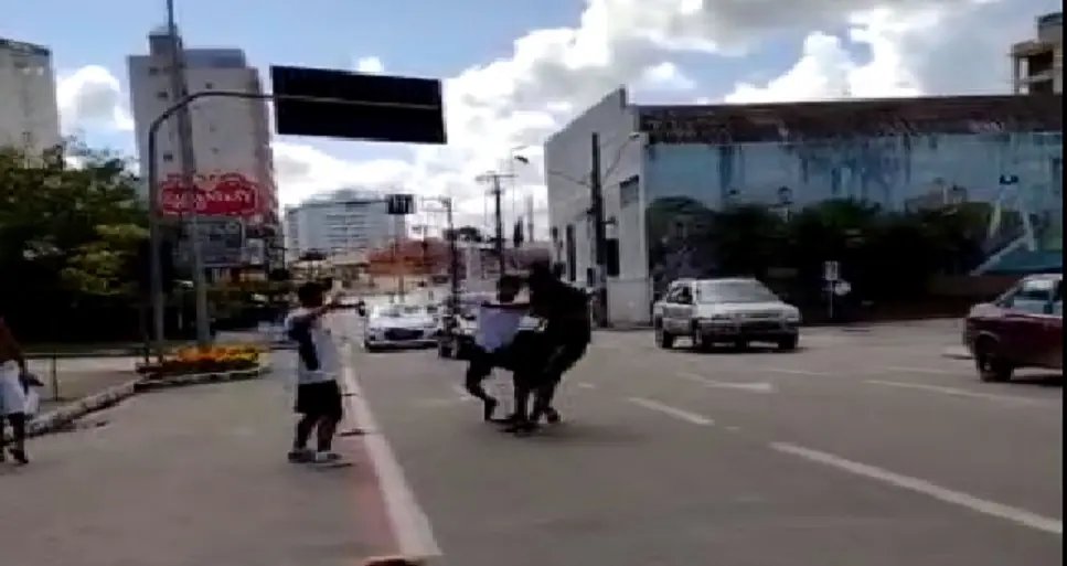 Um vídeo gravado por populares que circula nas redes sociais, mostra o homem rodeado por três pessoas, quando ele está se levando do chão, e tenta atravessar a rua, foi nesse momento que ele é agredido com o soco e cai novamente no meio da estrada. Outra pessoa chuta a mochila que estava com a vítima. Os veículos que passavam no momento desfiavam e buzinavam.