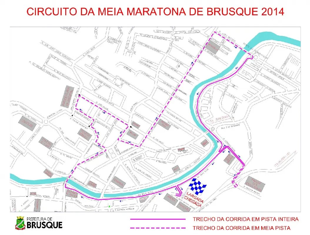 Devido à Meia Maratona de Brusque que será realizada neste domingo (26), algumas ruas da cidade estarão interditadas e outras em meia pista. Os motoristas devem ficar atentos à sinalização e orientação dos profissionais de segurança.