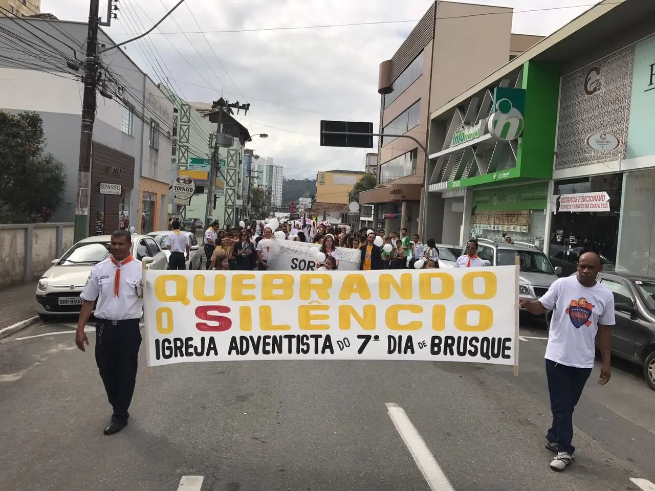 Durante a manhã deste sábado (26), os dois distritos de Brusque da Igreja Adventista do 7º Dia realizaram uma passeata contra a violência doméstica. O dia é conhecido como “Quebrando o Silêncio”, e reuniu cerca de 550 adventistas envolvidos na caminhada, que começou na Praça da Cidadania.