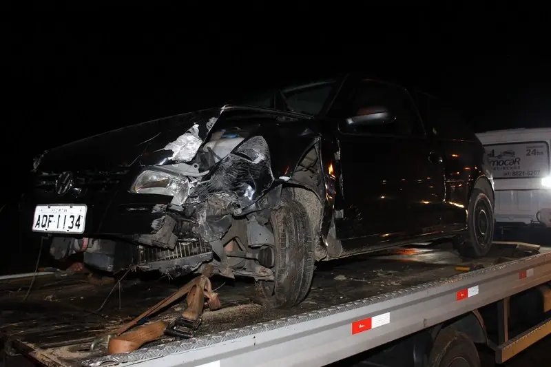 Familiares dos envolvidos na colisão, acionaram um guincho particular para remoção do automóvel do local.