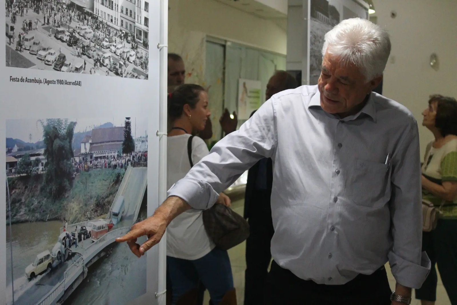 Jonas também falou sobre a exposição fotográfica, e se reconheceu em alguns momentos da história retratados no local. Ele citou a queda da antiga ponte Irineu Bornhausen, em 1980, quando todos escutaram um estrondo e a notícia se espalhou, com grande parte daqueles que estavam no Centro indo até o local ver o que havia acontecido.