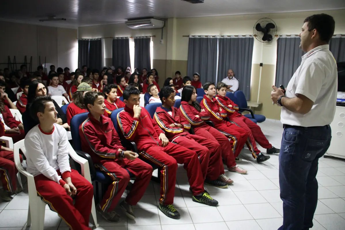 Segurança, prevenção e paz no trânsito são alguns dos temas que irão percorrer as escolas municipais a partir desta segunda-feira (8), com o início de mais uma edição do projeto Transitando nas Escolas. A aula inaugural da ação reuniu dezenas de alunos da EEF Paquetá, no auditório do educandário, em uma palestra descontraída, ministrada por um representante da empresa Mega Motos, parceira da iniciativa.