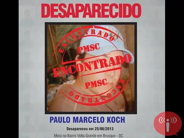 Os familiares de Paulo Marcelo Koch, desaparecido desde o dia 25 de junho, podem ficar tranqüilos. Visto pela última vez caminhando em direção à localidade do Barracão, em Gaspar, Paulo foi encontrado pela Polícia Militar na cidade de Canoinhas, nesta sexta-feira (5). A informação consta no portal Desaparecidos, presente no site da Polícia Militar de Santa Catarina.
