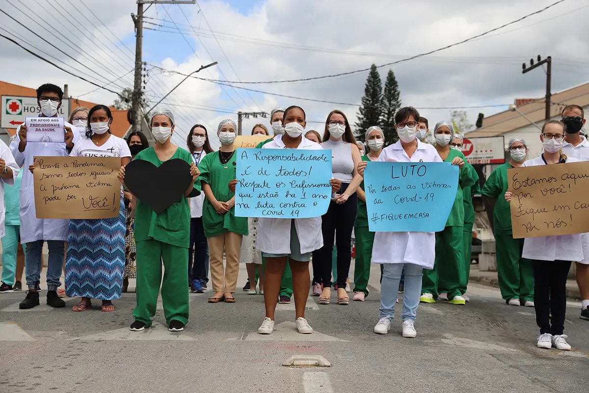 Quem passava pelo local pôde ouvir as sirenes das ambulâncias avistar os servidores com um laço preto e vários cartazes com dizeres “Estamos aqui por você! Fique em casa por nós”, “Luto por todas as vítimas da Covid-19”, “Nos sensibilizamos pelas 31 famílias que perderam seus entes queridos no nosso município”, entre outros.