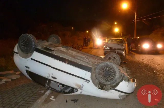Na tentativa de desviar do carro, o motorista, que seguia no sentido Rua Nova Trento/Azambuja, acabou capotando e colidindo de frente com o Gol. Apesar do estrago, ninguém ficou ferido.