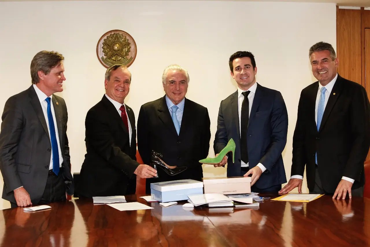 O prefeito entregou a Michel Temer dois pares de sapatos produzidos na cidade. Os calçados femininos serão entregues à primeira-dama, Marcela Temer. A visita do prefeito batistense foi acompanhada pelo senador Dário Berger e pelos deputados federais Rogério Peninha Mendonça e Mauro Mariani.