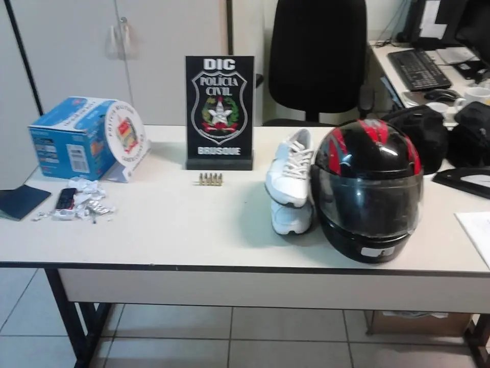A Polícia Civil do município realizou buscas pela casa do homem, onde foram encontrados, no espelho do banheiro, 10 munições intactas de revólver calibre 32. Além de um par de tênis semelhante ao utilizado por um dos assaltantes e um capacete.