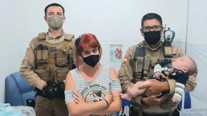 Imediatamente, os militares pegaram o bebê e perceberam que ele estava engasgado, além de cianótico, que é um sinal de que não estava mais respirando.