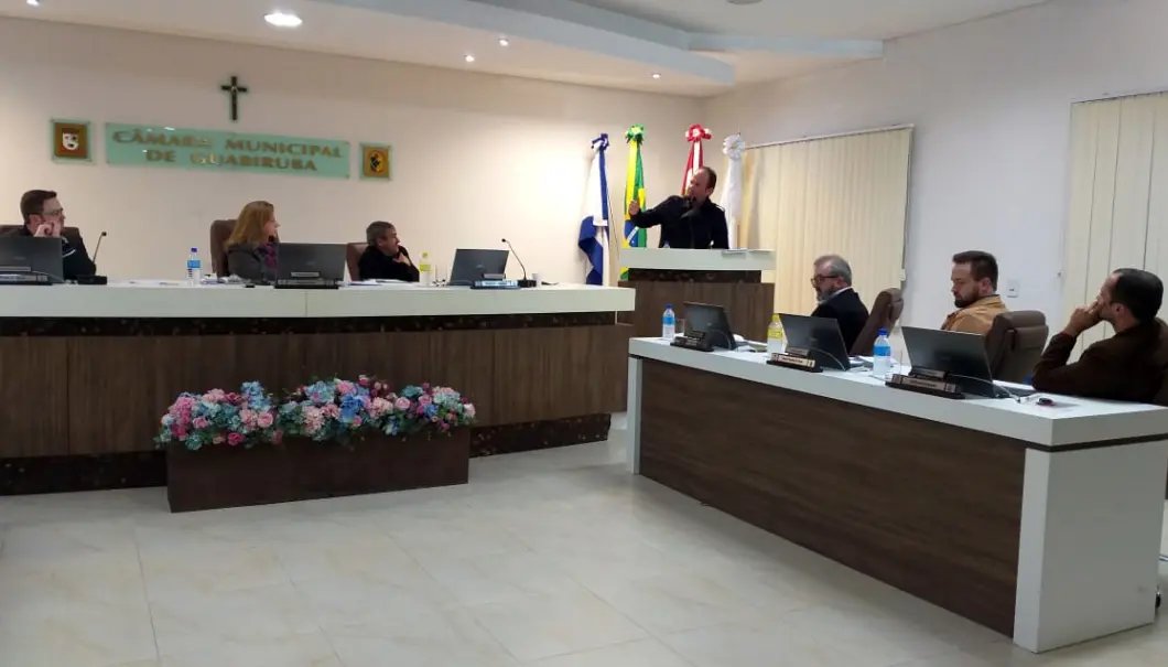 A Câmara de Vereadores de Guabiruba esteve reunida na noite desta terça-feira (9) e a pedido dos vereadores recebeu como convidado o proprietário da Atlantis Saneamento, Anderson Sandrini Botega, para falar sobre o abastecimento de água no município, tendo em vista as críticas constantes que recebe por conta da qualidade e da quantidade da água fornecida à população.
