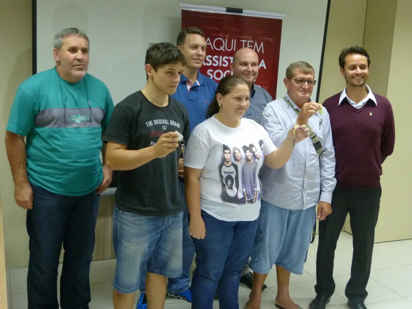 Três famílias que perderam moradias na enchente de 2008 voltaram a sorrir nesta segunda-feira (11). Elas foram contempladas com novas casas através de um convênio entre a Prefeitura de Brusque e o Ministério da Integração Nacional. A entrega das chaves ocorreu na tarde de hoje, no gabinete do prefeito interino Roberto Pedro Prudêncio Neto.