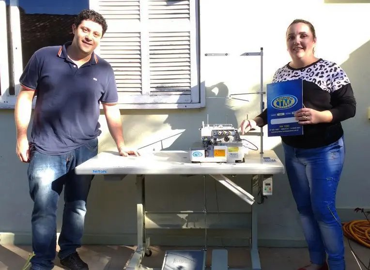 Na tarde desta segunda-feira (12), a sorteada na promoção Mês da Costureira – Rádio Cidade e Toninho Máquinas, recebeu seu prêmio. Moradora do bairro Zantão, Fernanda Verwiebe Victorino recebeu a máquina Overlock Sansei novinha, inclusive com motor eletrônico.