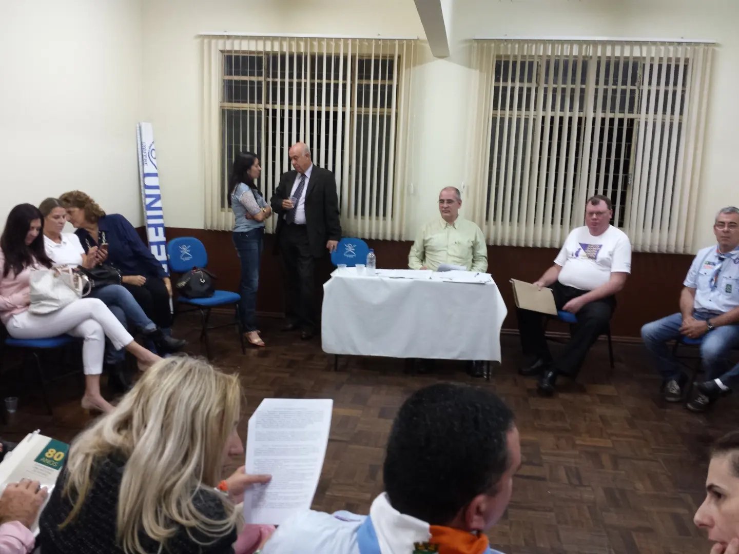 Com a participação de 23 integrantes de organizações comunitárias, o anfiteatro do Centro Universitário de Brusque (Unifebe) sediou, das 19h às 21h19min de quinta-feira (23), a Assembleia eletiva do Fórum Municipal de Defesa dos Direitos da Criança e doAdolescente de Brusque (FMDDCA). Foram eleitas para representarem a sociedade civil de Brusque na composição do Conselho Municipal dos Direitos da Criança e do Adolescente (CMDCA), no biênio 015/2017, a AssociaçãoEmpresarial de Brusque (Acibr), o Grupo Escoteiro Brusque (33ºGEB), o Centro de Direitos Humanos (CDH), a Associação de Pais e Amigos dos Excepcionais (Apae), o Centro Universitário deBrusque (Unifebe) e o Lar Sagrada Família. Como entidades suplentes foram escolhidos o Grupo de Estudos e Apoio à Adoção (GEAAB) e o Lar Menino Deus.