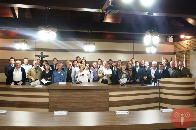 Placas condecorativas foram entregues pelos vereadores a cada um dos homenageados. Dos dezenove indicados por sindicatos da classe trabalhadora da cidade, apenas dois não compareceram.