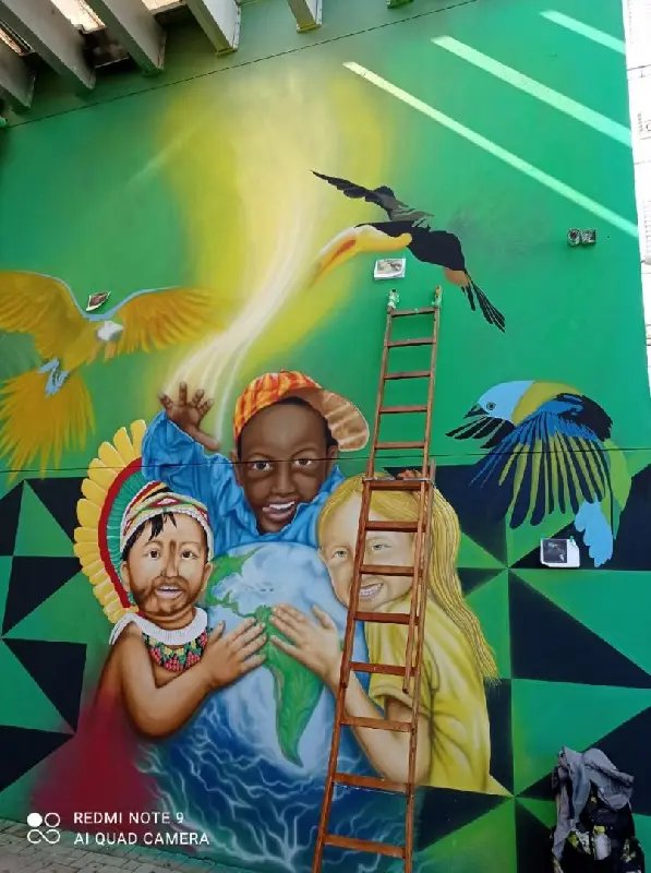 O painel “Diversidade de um povo II” do artista e arte educador, Evailson Inomata, traz cores vibrantes, rostos, fauna e flora para retratar as belezas da cultura brasileira. “Acho que em meio a pandemia a arte de rua vem pra transformar, ela dá vida e cor para a paisagem urbana e essa em especial retrata o povo e a natureza plural do nosso país”, comenta a diretora da Fundação Cultural de Brusque, Zane Marcos.