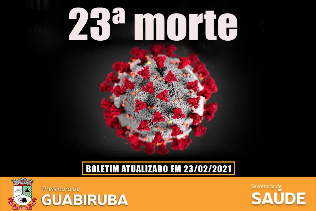 Guabiruba registra mais um óbito por Covid-19. O paciente era um homem de 57 anos que possuía hipertensão. Ele deu entrada na enfermaria do Hospital Azambuja em 13 de fevereiro e esteve na UTI do mesmo hospital desde 14 de fevereiro. Faleceu hoje na manhã desta terça-feira (23).
