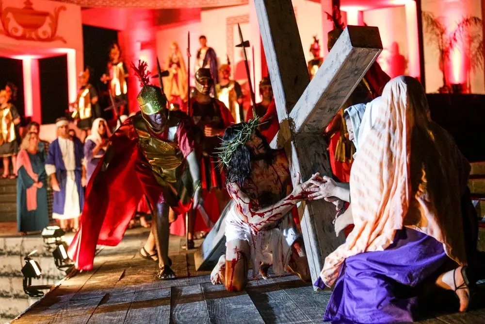 Através da narração de Maria Madalena, o público se emocionou e pode conferir as 33 cenas do teatro, interpretadas por, aproximadamente, 300 atores voluntários, que narraram os últimos momentos da vida de Jesus antes de sua morte: desde o apedrejamento de Maria Madalena e da escolha dos Apóstolos, até a Crucificação e Ressurreição.