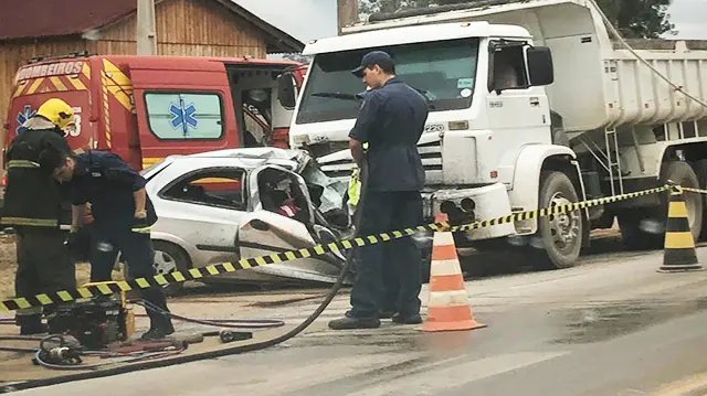 Na manhã desta sexta-feira (24) um acidente vitimou fatalmente quatro pessoas em Tijucas na SC-410. A colisão frontal ocorreu entre carro e caminhão. Informações apontam que quatro pessoas que estavam no Celta com placas de São João Batista morreram na hora.