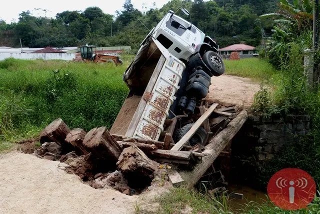 Um caminhão da Prefeitura de Brusque caiu de um pontilhão localizado na Rua São Pedro, bairro de mesmo nome, na manhã desta quinta-feira (2). Próximo do Edinho Materiais de Construção, essa passagem se encontrava deteriorada pela ação do tempo. Ao tentar passar por ela, o veículo, que estava carregado de areia, foi afundando aos poucos, até que a ponte ficasse totalmente destruída.