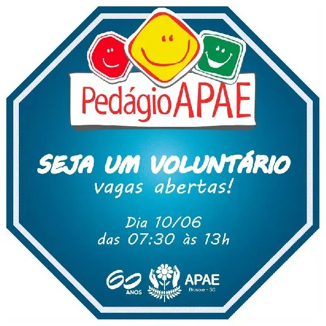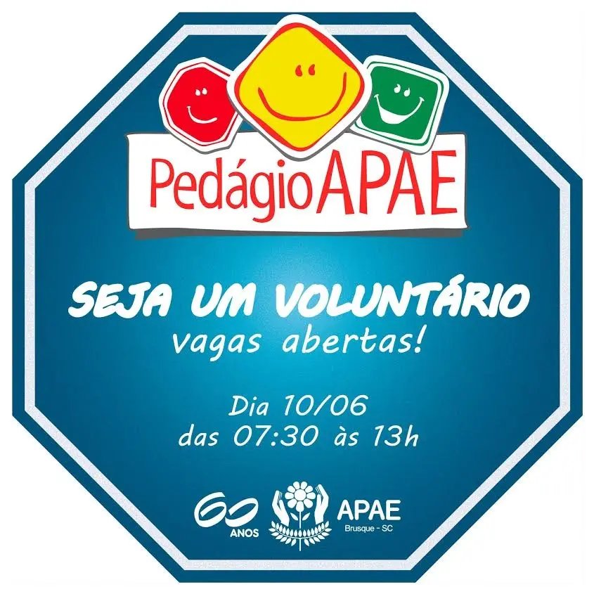 A Apae de Brusque está preparando mais uma edição de seu pedágio anual, onde voluntários buscam recursos para a entidade. Neste ano, o pedágio acontecerá no dia 10 de junho, um sábado, das 7h30 às 13h em vários pontos espalhados da cidade. E a contagem de voluntários que são necessários é alta.