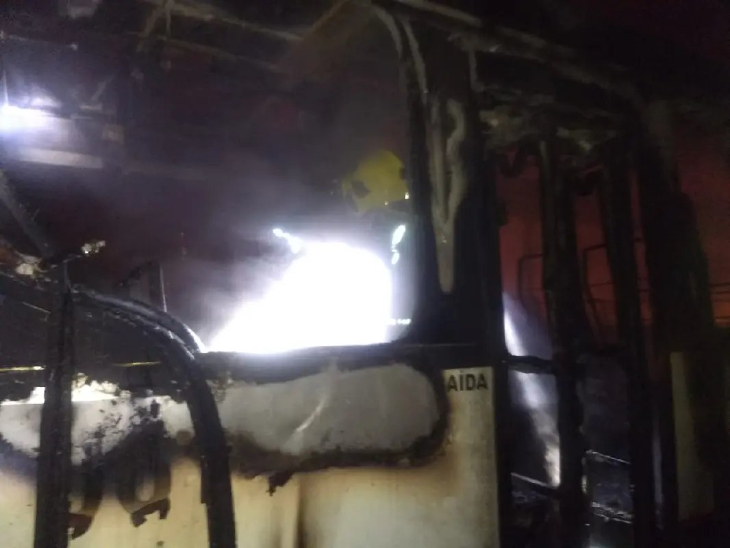 Por volta de 18h50 de sábado, bombeiros foram acionados para a ocorrência na Rua Ângelo Lussoli. No terreno, que serve para estacionamento de ônibus de uma empresa,  havia um deles. O veículo foi totalmente consumido pelas chamas.