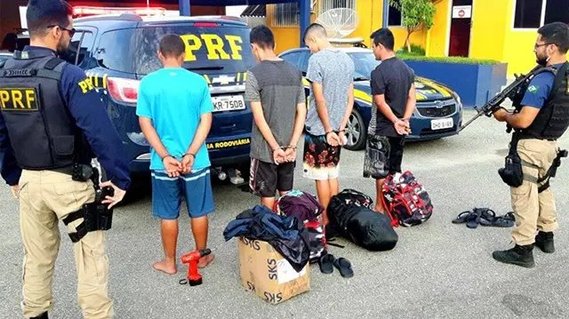 A Polícia Rodoviária Federal ao abordar um veículo Corsa na BR-101 em Itapema deteve quatro homens. O motivo é que na revista feita no veículo foram encontradas certa quantidade de roupas furtadas, avaliadas em R$ 25 mil.