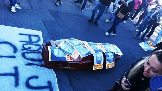 Desde o começo da manhã desta sexta-feira (28) as manifestações no dia da greve geral continuam ocorrendo em várias regiões no Estado. Na cidade de Tubarão pessoas colocaram em um caixão fotos dos deputados federais de Santa Catarina que votaram favoravelmente a reforma trabalhista que aconteceu na quarta-feira (26) em Brasília.