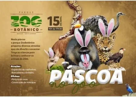 Neste sábado (15), o Parque Zoobotânico de Brusque estará com uma programação diferenciada para comemorar a Páscoa. As atividades iniciam às 15 horas e é uma oportunidade de se divertir em família, em meio à natureza.