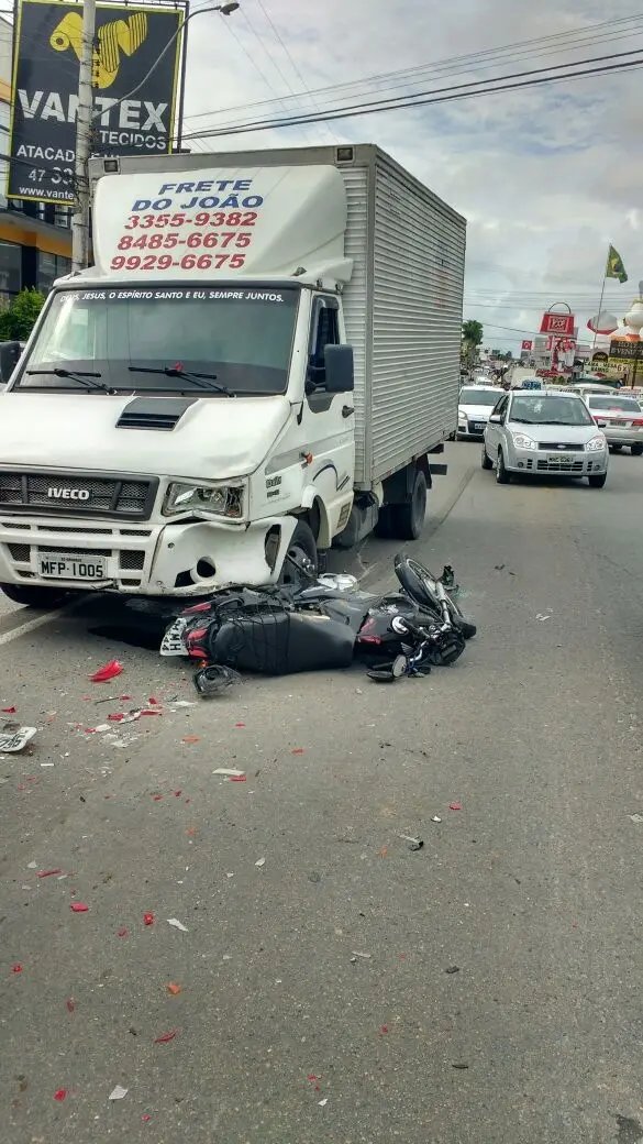 O acidente envolveu três veículos, um caminhão Iveco, placas de Brusque, um WV/Golf placas de Pato Branco-PR e a mota Honda/Fan KS de Brusque. Os três estavam no mesmo sentido, quando a moto bateu na traseira do Golf e acabou caindo parando debaixo do caminhão que vinha atrás.